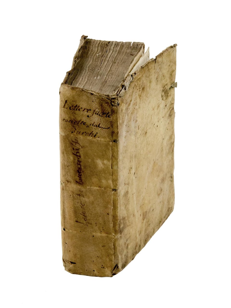 “Ce livre, préparé pour Aldo Manuzio le Jeune d'après la dédicace, compte 61 épistoliers et contient 159 lettres numérotées, puis 4 autres encore qui accompagnent l'envoi de different écrits burlesques ou libertins: L'Oratione della ignoranza (de Doni), La Pazzia, La Formaggiata, La Sacra Corona (de Caro) et La Pelatina. Voici les principaux auteurs: A. Bonaguidi (8 l.), P. Giovio (7 l.), Bonfadio (6 l.) et D. Atanagi (5 l.) qui est aussi le principal destinataire (18 l. dont la première probablement en signe d'hommage). A.F. Doni tient une certaine place à la fine du volume avec Il Valore degli asini, L'asinesca gloria parmi le lettres encore numérotées, en plus d'écrits déjà cités. Les lettres, plus raramente datées que dans le livre I et en général plus récentes, sont groupées par auteurs, sans ordre chronologique. Ce second livre est plus disparate que le premier. Il place côte à côte des noms d'épistoliers célèbres, d'inconnus nombreux et des pseudonymes; il mêle au genre épistolaire davantage de poésies, des avertissements aux lecteurs et de long discours extraits d'ouvrages divers; il accueille le burlesque paradoxal, obscène” (J. Basso, Le genre epistolaire en langue italienne (1538-1662). Répertoire chronologique et analytique, Roma & Nancy, 1990, pp. 205-206).