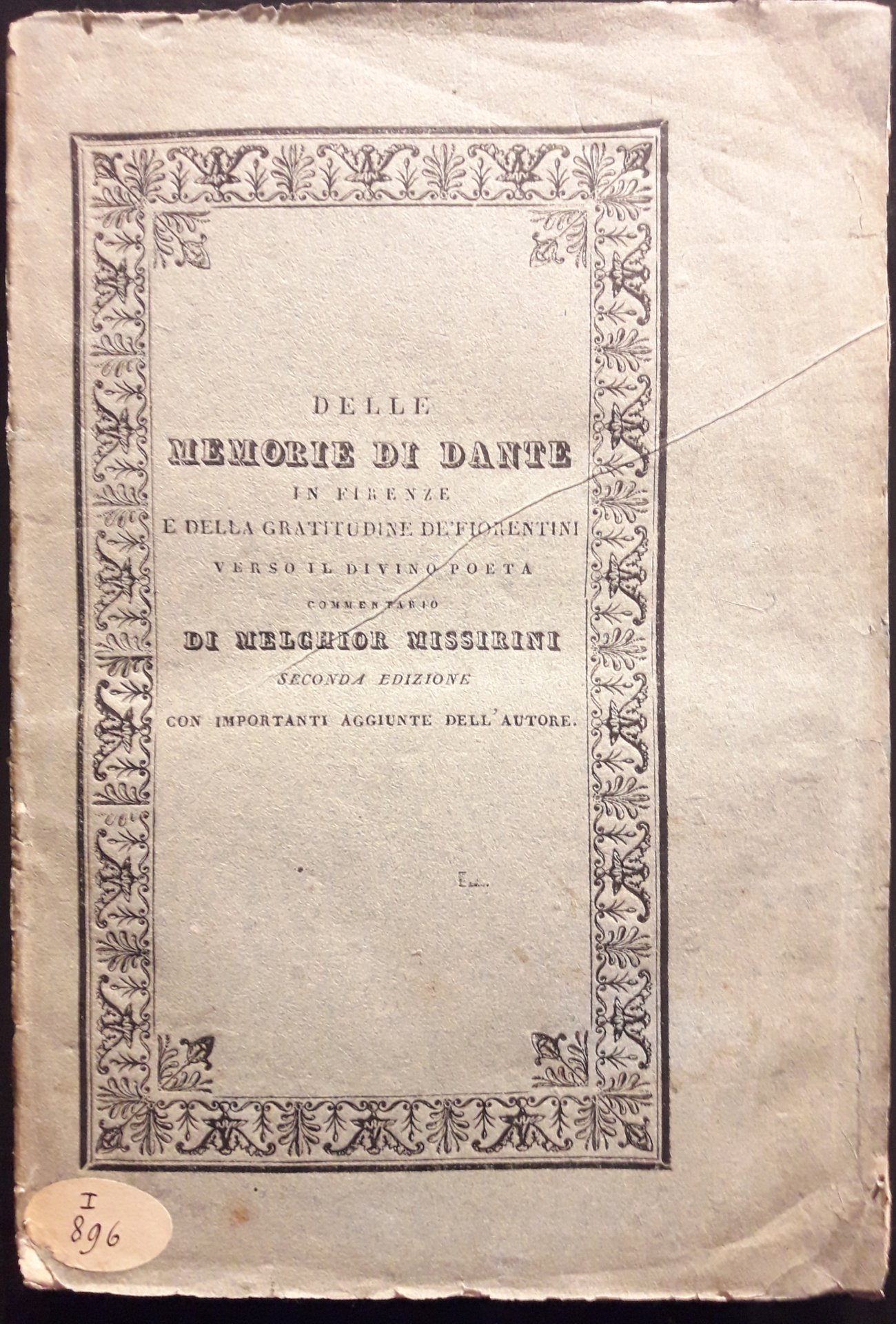 Delle memorie di Dante in Firenze e della gratitudine de' fiorentini verso il divino poeta. Con importantissime note ed aggiunte. ommentario. Seconda edizione c