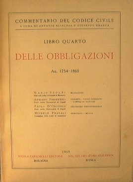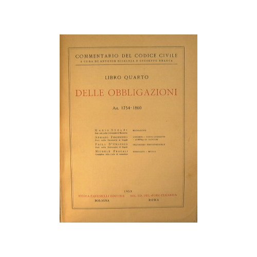 Commentario del Codice Civile a cura di Antonio Scialoja e Giuseppe Branca . - in 8° - pp.XVIII + 606 + XVIII + 404 - Brossura editoriale - 2 volumi - Srappetto al dorso con piccola mancanza - Libro quarto Art. 1754 - 1812 - Stolfi M. Fiorentin A. D'onofrio P. Fragali M.: Mediazione. Deposito. Sequestro convenzionale. Comodato . Mutuo ; Libro Quarto Art. 1861-1932 - Torrente A. - Salandra V.: Rendita perpetua, rendita vitalizia, assicurazione