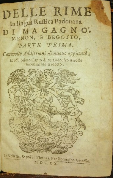 Delle rime in lingua rustica padovana di Magagno, Menon, e Begotto, parte prima-quarta. Con molte addittioni di nuouo aggiunte; et co'l primo canto di m. Lodouico Ariosto nuouamente tradotto