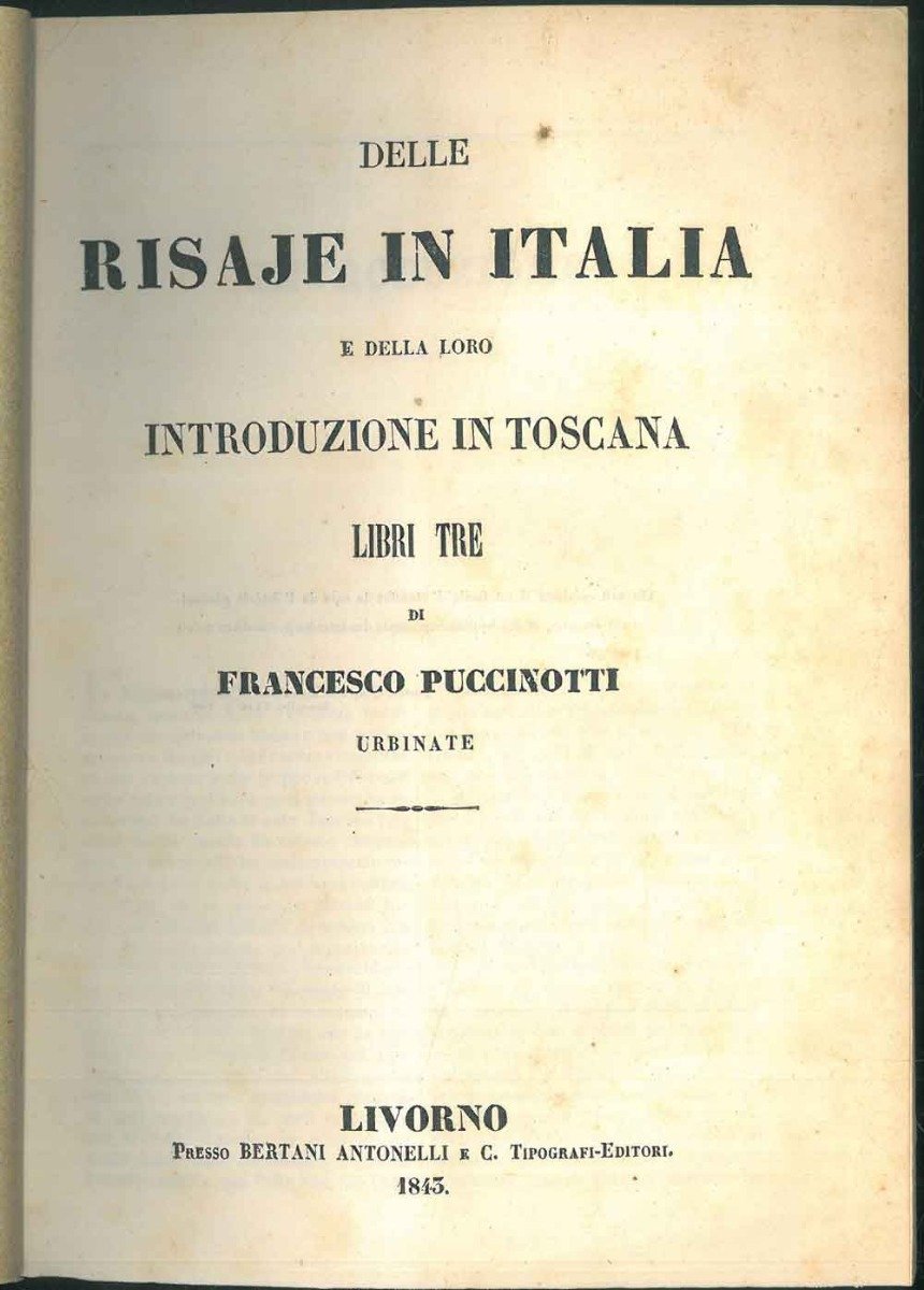 Delle risaje in Italia e della loro introduzione in Toscana. Appendice contenente le memorie dei chiarissimi: Mazzarosa, Bertini e Farini sulle risaje lucchesi, piemontesi, ravennate