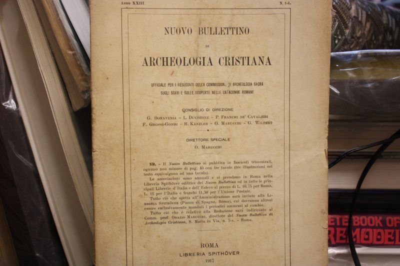 CODICE 956, , ISCRIZIONE GIUDAICHE A.VACCARI, LA MEMORIA APOSTOLICA DELLA VIA APPIA MARUCCHI, UNA ISCRIZIONE DI PAPA SIMMACO F.GROSSI GONDI, ETC. NUMEROSSISME TAVOLE ILLUSTRATE FUORI TESTO, PAGINE 127, SEGNI DI USURA E PICCOLO STRAPPETTO SU UN FOGLIO INTERNO
