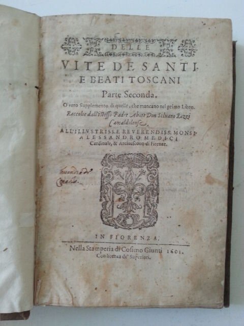 DELLE VITE DE SANTI E BEATI TOSCANI PARTE SECONDA O VERO SUPPLEMENTO DI QUELLE CHE MANCANO NEL PRIMO LIBRO RACCOLTE DALL'ISTESSO PADRE ABATE DON SILVANO RAZZI CAMALDOLENSEIN FIORENZA NELLA STAMPERIA DI COSIMO GIUNTI 1601In