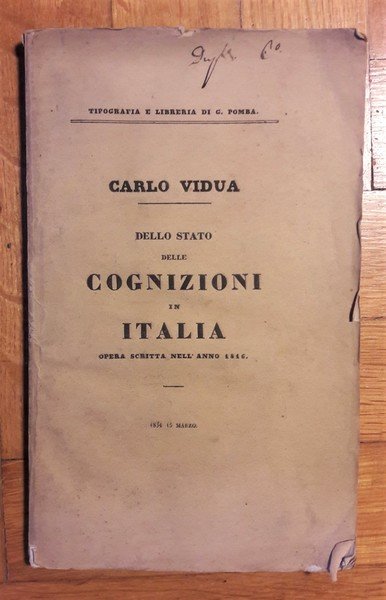 *Dello stato delle Cognizioni in Italia. Discorso del Conte Carlo Vidua. Prima edizione. 1834