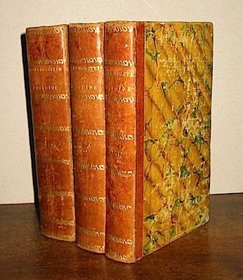 16mo (cm. 16,3), 6 Voll. legati in tre. Opera completa. Legature coeve in mz. pelle con fili e titoli impressi in oro al ds. Ex libris Sacchetti al contropiatto anteriore. Carte leggermente ingiallite ma ottimo esemplare.