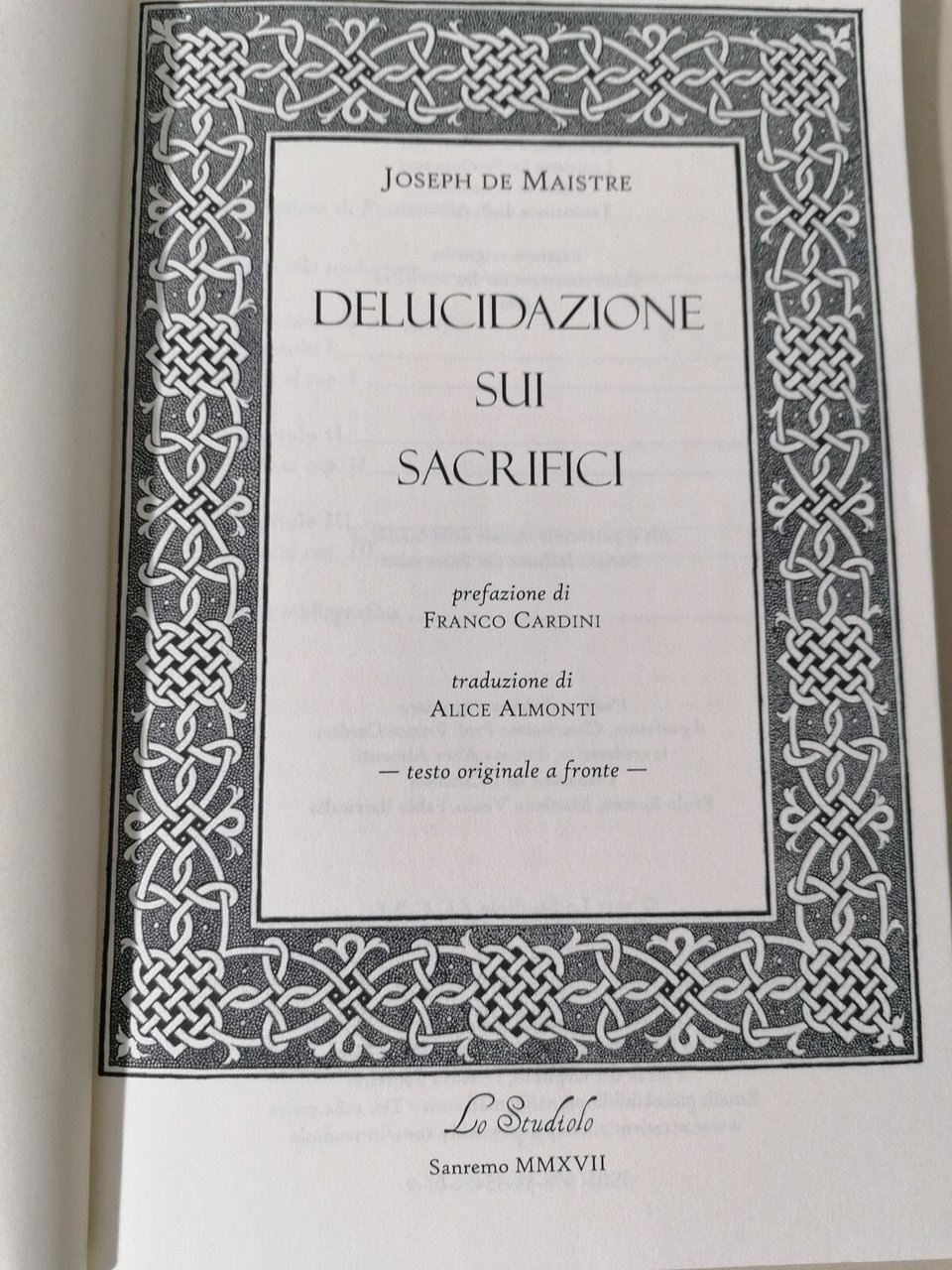 Delucidazione Sui Sacrifici Libro De Maistre Cardini Testo A Fronte Lo Studiolo