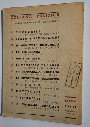 DEMOCRAZIA CRISTIANA Di Romolo Murri. Cosmopolita editore, collana politica 1944.87 pagine. Copertina editoriale in brossura. Stato di conservazione: buono (pagine normalmente ingiallite, sottolineature a matita rossa, strappi alla pagina dell'indice)
