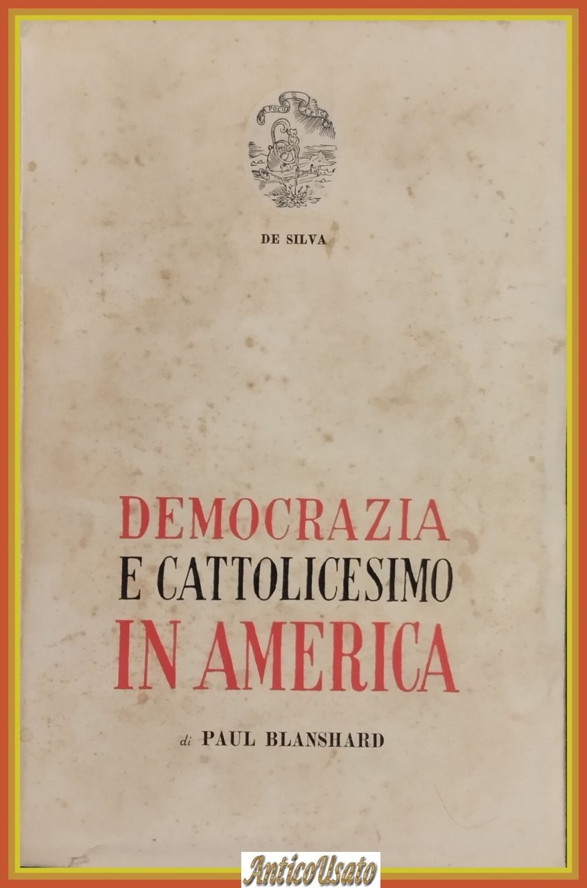 DEMOCRAZIA E CATTOLICESIMO IN AMERICA di Paul Blanshard 1953 De Silva Libro