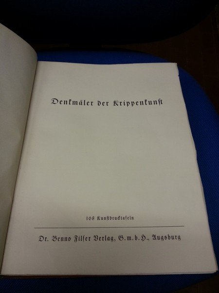 1 lingua: tedesco Legat. edit. in tela, cm 32x25, pag. n.numerate, 168 tavole con migliaia di magnifiche illustraz. in b.n. anche a piena pagina - Opera splendidamente illustrata dedicata alle statuine e sculture da presepe di tutta Europa, comprese le italiane - Ottimo stato di conservazione.