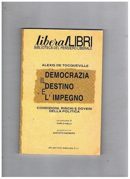 Denocrazia il destino e l'impegno. Condizioni, rischi e doveri della politica. Coll. Biblioteca del pensiero liberale.