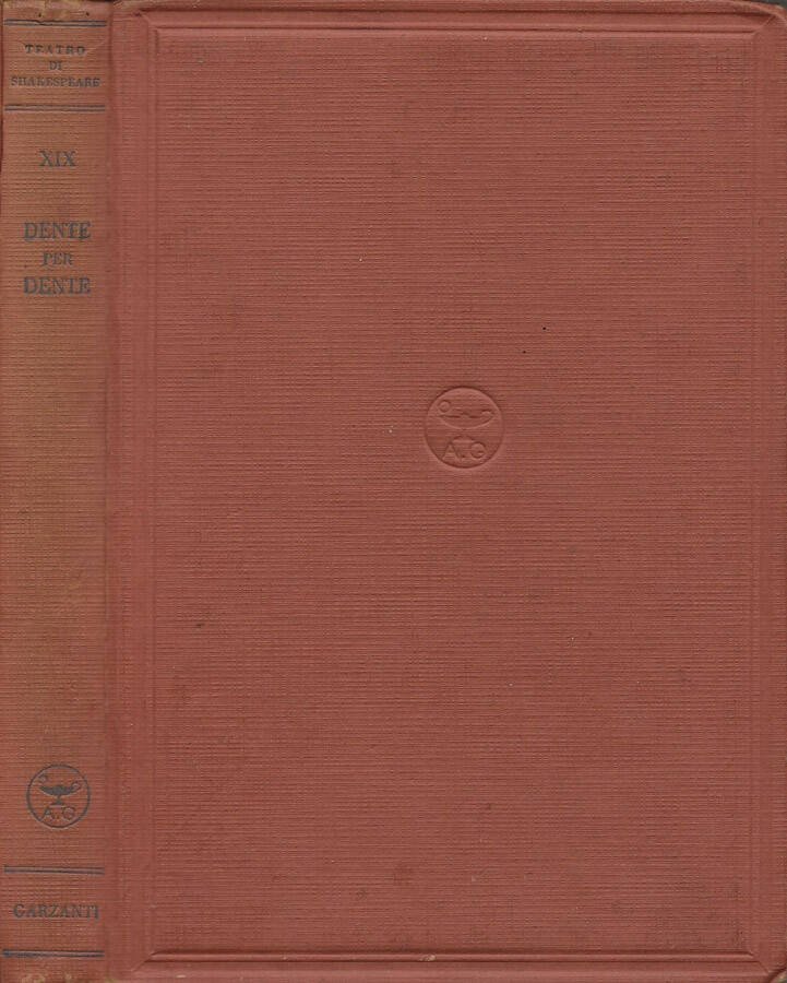 Volume rilegato con titoli al dorso, coperta minimamente segnata da fattore tempo, tagli e pagine con modesta imbrunitura, testo completamente fruibile, n. 19 della collana "Teatro di Shakespeare", nuova traduzione di Diego Angeli, numero pagine 203 (VII, 196)