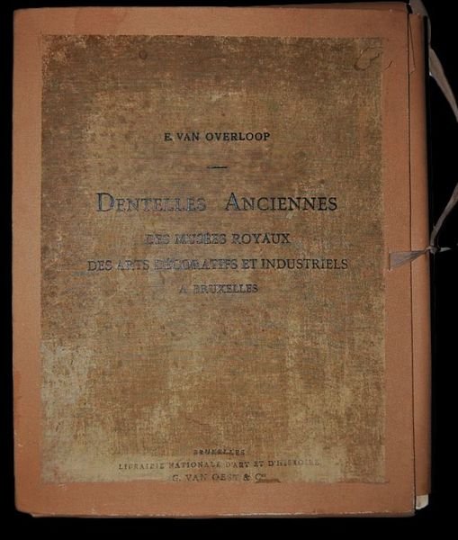 In folio (45,5×36 cm); (8), 51, (3) p. e 100 tavv. f.t. divise in 4 parti ognuna con i piatti anteriore e posteriore della brossura originale conservati e applicati su brossure protettive recenti. Il tutto è contenuto entro una elegante legatura protettiva foderata in tela e che presente al piatto anteriore il piatto originale dellopera stampato in nero su tela. Prima rara edizione completa di tutte le sue parti di questa importantissima pubblicazione che riproduce la celeberrima collezione di pizzi (Dentelles) antichi conservati presso il Musée Royaux des Arts Decoratifs et Industriels a Bruxelles. Questa prima edizione è rarissima mentre la seconda edizione uscita nel 1912, identica a questa edizione, risulta essere molto meno rara. Opera completa di tutte le sue parti. Overloop fu Membro del Consiglio di Amministrazione del Museo Reale di Storia Naturale del Belgio, del Museo Etnografico della sezione Arti Decorative e direttore dei Musei Reali delle Arti Decorative e Industriali. Fu anche lorganizzatore della sezione scientifica dellExpo di Bruxelles del 1897. Fu uno dei massimi esperti di pizzi antichi del suo tempo. First edition, very rare.