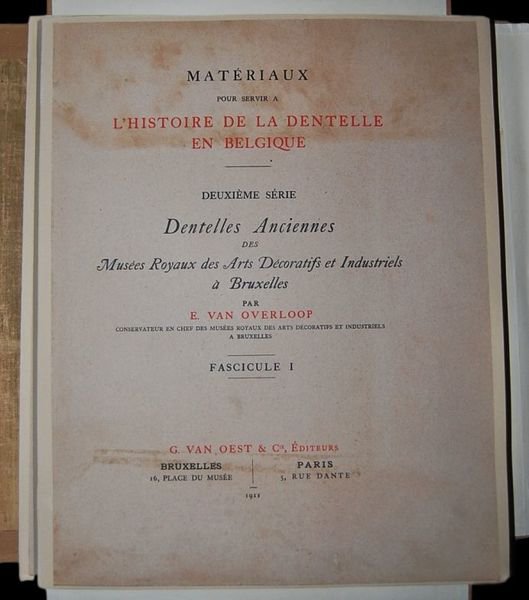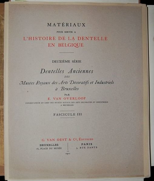 Dentelles Anciennes des Musée Royaux des Arts Decoratifs et Industriels a Bruxelles par E. Van Overloop conservateur en chef des Musees Royaux des artes decorative et industriels a Bruxelles Fascicule I-V.