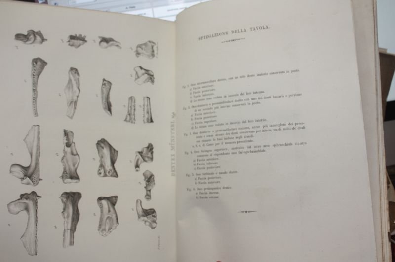 CODICE 2401, , DENTEX MUNSTERI, SPECIE DI PESCE I CUI RESTI FOSSILI TROVATI NELLE ARGILLE SUBAPENNINE DEL VOLTERANNO, DAL DOTT GASPARE AMIDEI SONO DESCRITTI ED ILLUSTRATI, DAL, PROF CAV.GIUSEPPE MENEGHINI, , , DALLA PAG 20, ALLA PAG 42, , UNA TAVOLA INCISIONE ALLEGATA, CON SPIGAZIONI, , , COPERTINE MUTE