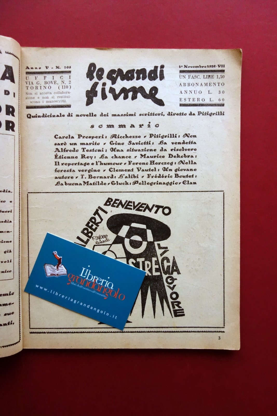 mezza pagina, al frontespizio della rivista "Le Grandi Firme"