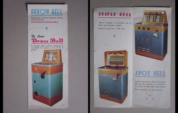 Depliant ARROW BELL giochi elettrici, slot machine da bar. Anni'70