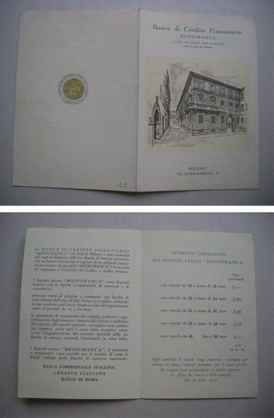 Depliant "Banca di Credito Finanziario Mediobanca - MILANO via Filodrammatici 10" Anni'50