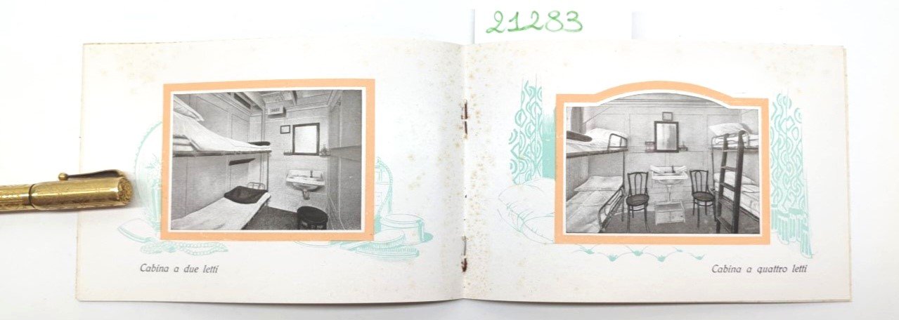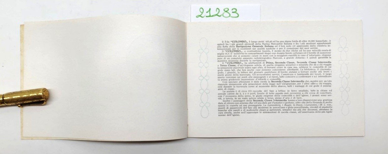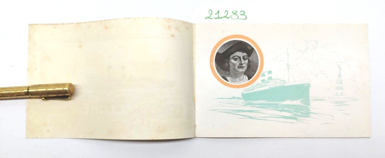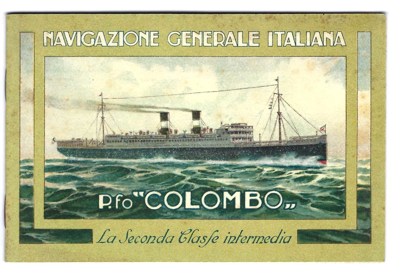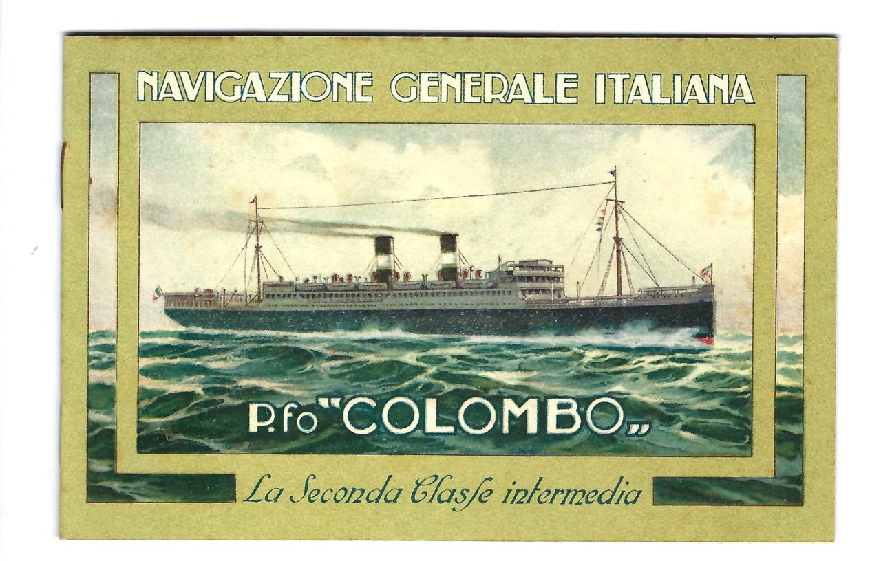 Depliant Brochure Navigazione generale italiana piroscafo Cristoforo Colombo 2° classe intermedia G. Schenone Genova