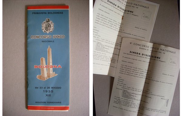 Depliant CONCORSO IPPICO NAZIONALE BOLOGNA - Primavera Bolognese 1935. Ippodromo Giardini Margherita + Scheda Iscrizione