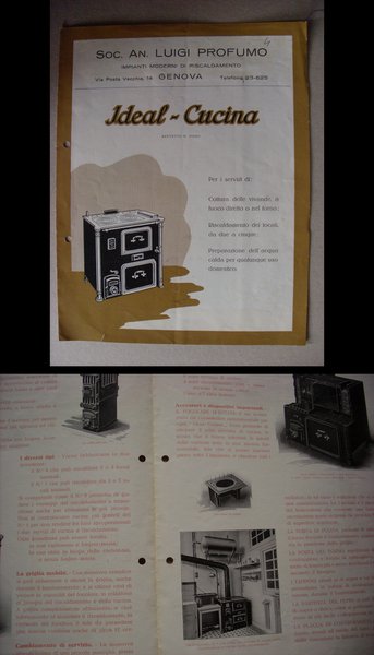 Depliant Società Anonima Luigi Profumo. Impianti Moderni di Riscaldamento GENOVA. IDEAL CUCINA. Anni'30