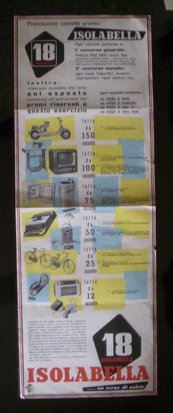 Depliant / volantino ISOLABELLA Estrazione / gioco premi 1954 (Radiomarelli / Necchi / Igni s / Olivetti / Legnano)