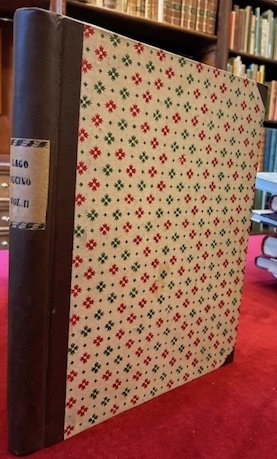 8vo (cm. 26), 63(1) pp. con due carte litografiche ripiegate f.t. (unito) Atti della Regia Accademia dei Lincei 1913. Notizie degli scavi di antichità, Roma, Tipografia della R. Accademia dei Lincei 1913 (cm. 27,8), da p. 113 a p. 160. Con illustrazioni n.t. (unito) Mancini Camillo, Il Fucino agrologicamente considerato. Breve saggio critico-descrittivo, Città di Castello, Tipografia dello Stabilimento S. Lapi 1890 (cm. 27,8), 127(1) pp. con una tabella più volte ripiegata. Legatura ‘900 in mz. tela. Titolo ‘Lago Fucino vol. II’ su etichetta cartacea al ds. Indice della Raccolta dattiloscritto su una carta inserita ad inizio volume. Brossure editoriali della seconda e terza opera conservate all’interno. Provenienza: Collezione Spina, Avezzano (timbretti ex libris). Cfr. Pansa per la prima opera (n. 948) e per la terza (n. 953).