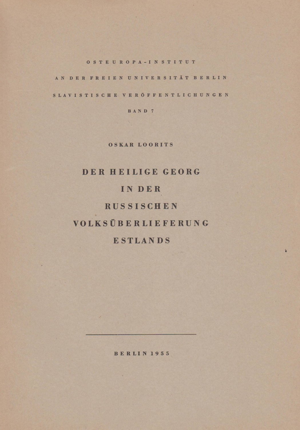 Der Heilige Georg in der russischen Volksüberlieferung Estlands.