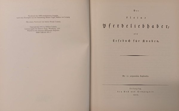 Copertina Rigida, brossura.<BR>Condizioni Molto buone<BR>Lingua Tedesco<BR>Ristampa dell'edizione pubblicata nel 1800 basata sulla vicina copia della Collezione Heiner Vogel, Molkau a Lipsia. 68 pagine con 12 lastre di rame dipinto. Con una postfazione di Sabine Knopf.