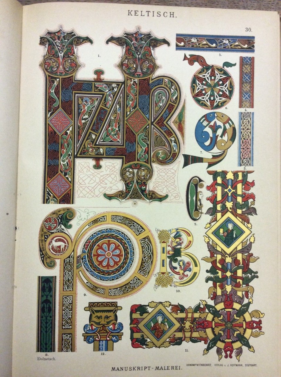 In-4 gr. (mm. 337x235), bellissima legatura editoriale in tela marrone, riccamente decorata ai piatti e al dorso in oro e nero, pp. (6), con 1200 illustrazioni in 85 tavole in tinta e in cromolitografia - ciascuna con testo descrittivo a fronte - relative a: pavimenti a mosaico, pittura murale, architettura policroma, ceramica, bronzi, tessitura, ricamo, smalto cellulare, pittura laccata, pittura manoscritta, lavorazione dei metalli, decorazioni in legno e metallo, smalto a fossa, rivestimento del pavimento, vetrate, smalto, pittura del coperchio, pannelli in maiolica, intarsio, tecnica del merletto, graffiti, pittura su maiolica, decorazioni tipografiche, pittura su tappeti, tessitura di arazzi, ricamo in lino, legature di libri, sculture dipinte, decorazioni scultoree in pietra, cartigli, carta da parati in pelle pressata, lavorazioni orafe, pressatura pelli, bordure in tessuto, etc. Prima edizione di questa meravigliosa monografia dedicata agli ornamenti del mondo e ai varii stili di tutte le epoche.Ben conservato.
