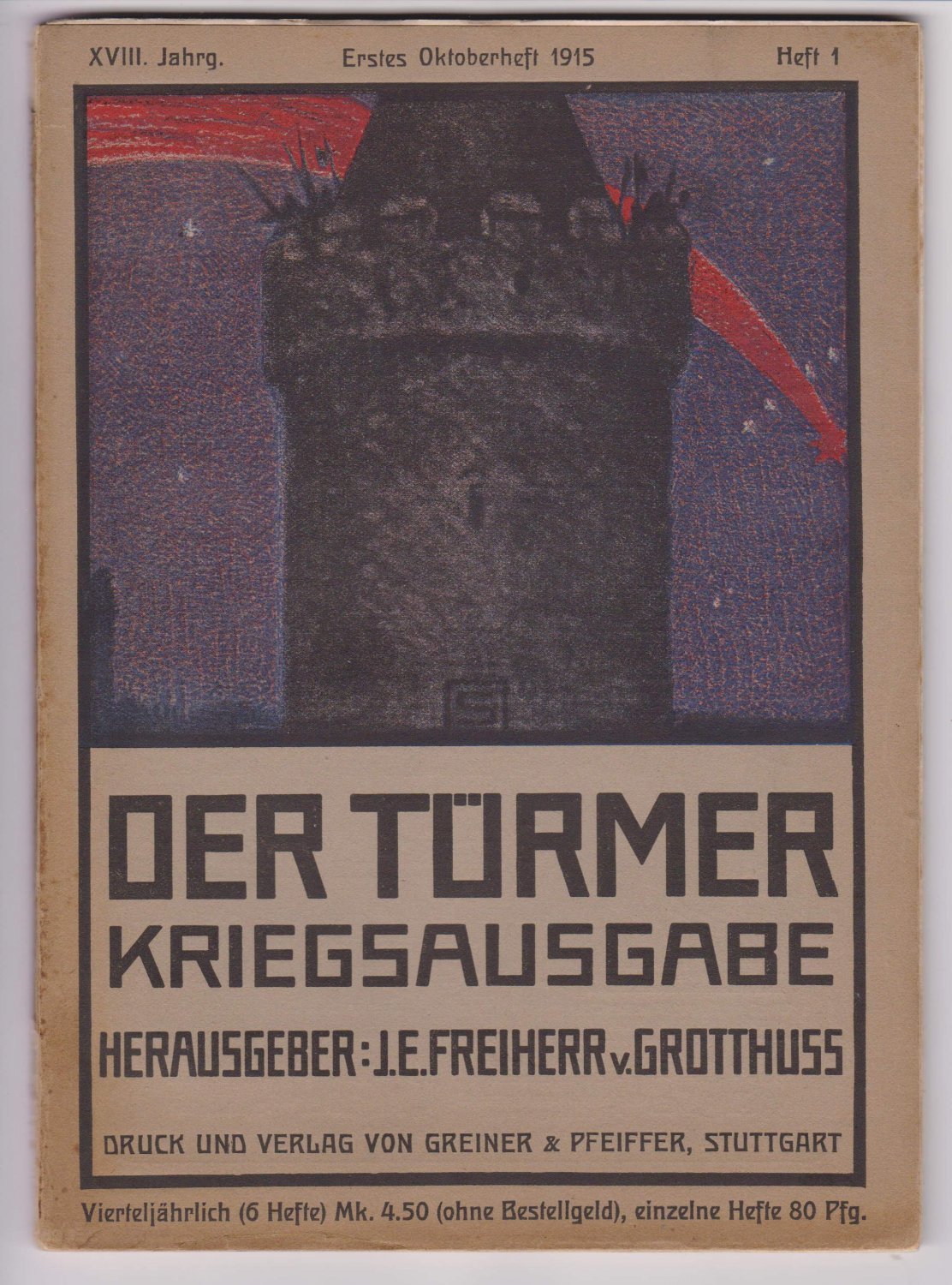 Der Türmer. Kriegsausgabe. XVIII. Jahrgang Oktober 1915 - September 1916. Heft 1 - 24. (Heft 21 fehlt!)