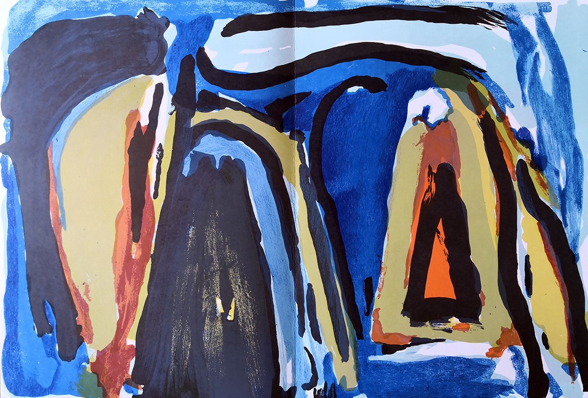In 4°; pp. 28 con illustraz. f.testo in nero e a colori. Due belle litografie originali a colori a doppia pagina: "Paysage" e "Souvenir Duthuit", altra litografia originale alla copertina: "Vif". Brochure edit. illustrata con titoli al piatto; numero della nota rivista dedicato all'artista olandese (1895-1981). Cfr. Bram van Velde "Les litographies II n.208, 209, 210.<BR>(vedi riproduz.)