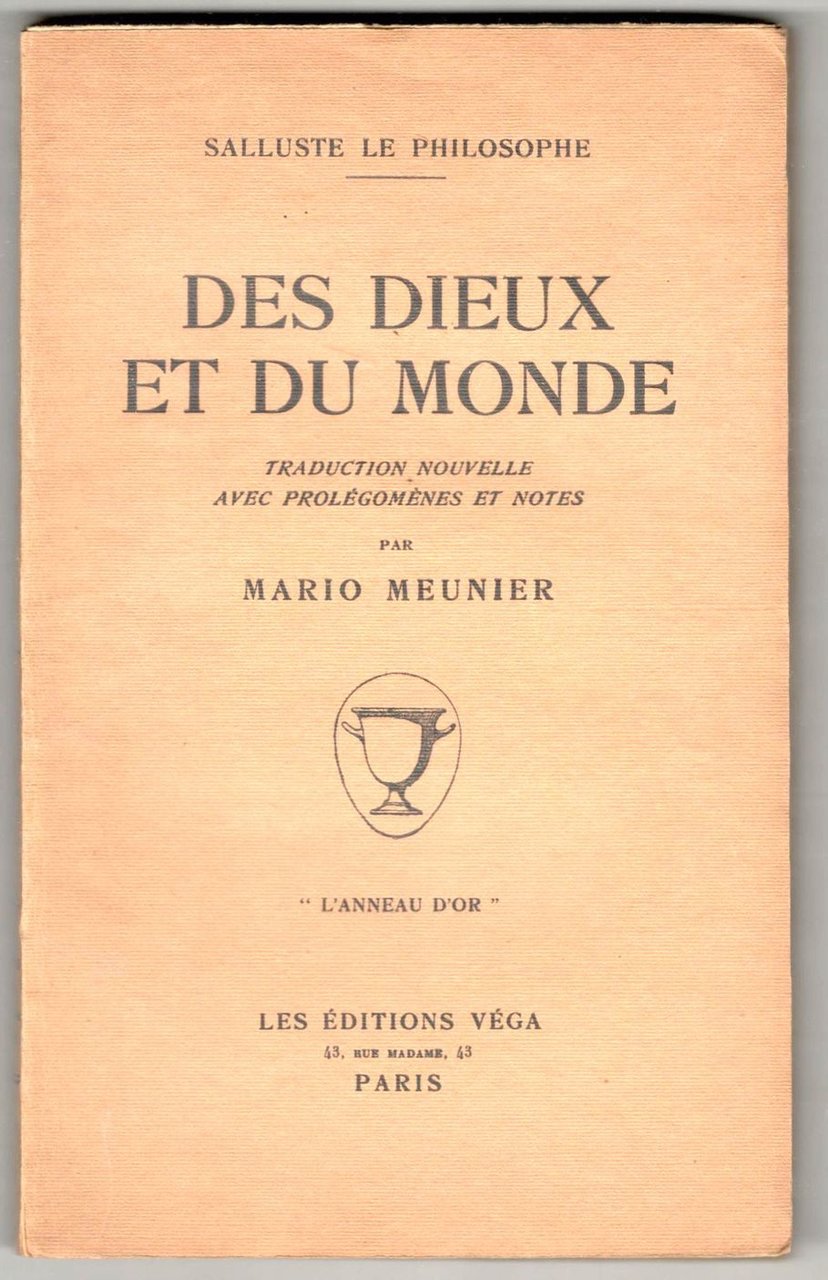 Des dieux et du monde. Traduction nouvelle avec prolégomènes et notes par Mario Meunier