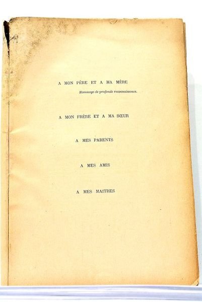 64 pages (17x25cm). Couverture imprimée. Petites déchirures au dos. Exemplaire, non coupé, abîmé par l'humidité dans les marges supérieures. Envoi de l'auteur au Docteur Bonnet. Rare. Instestins. Anus Artificiel.