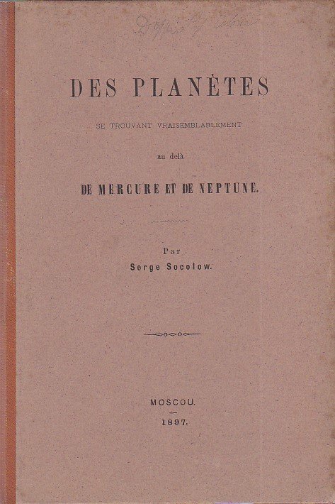 In-8°, pp. 40, (2), cartonatura editoriale a stampa. Dorso in tela. Ottimo stato. Edizione originale. Lo studio riprende l'ipotesi di Le Verrier sulla possibile esistenza di pianeti oltre Mercurio e Nettuno.