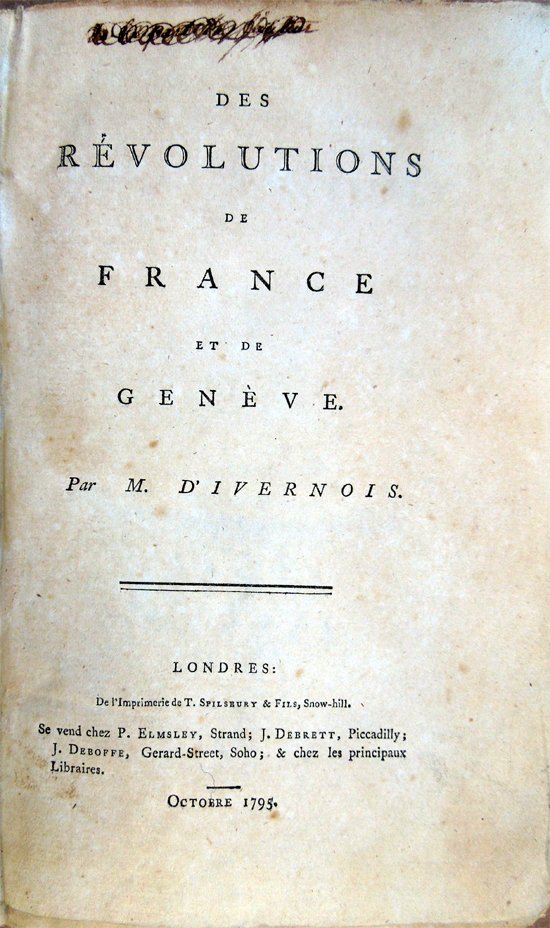 Des Révolutions de France et de Genève par M. D'Ivernois