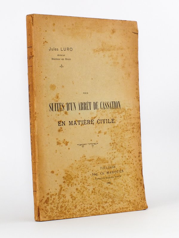 1 vol. in-8 br., Imp. Ch. Marquès, Toulouse, 1905, 222 pp. Envoi de l'auteur. Etat très satisfaisant (rouss. sur couv.)