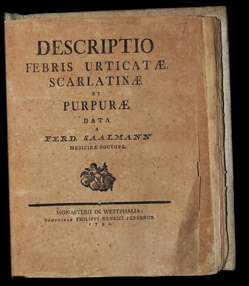 Descriptio febris urticatae, scarlatinae, et purpurae, data a Ferd. Saalmann Medicinae doctore. Unito a: Descriptio febrium malignarum in genere, et speciatim sic dictarum catarrhhalium malignarum simplicium, et exanthematicarum;