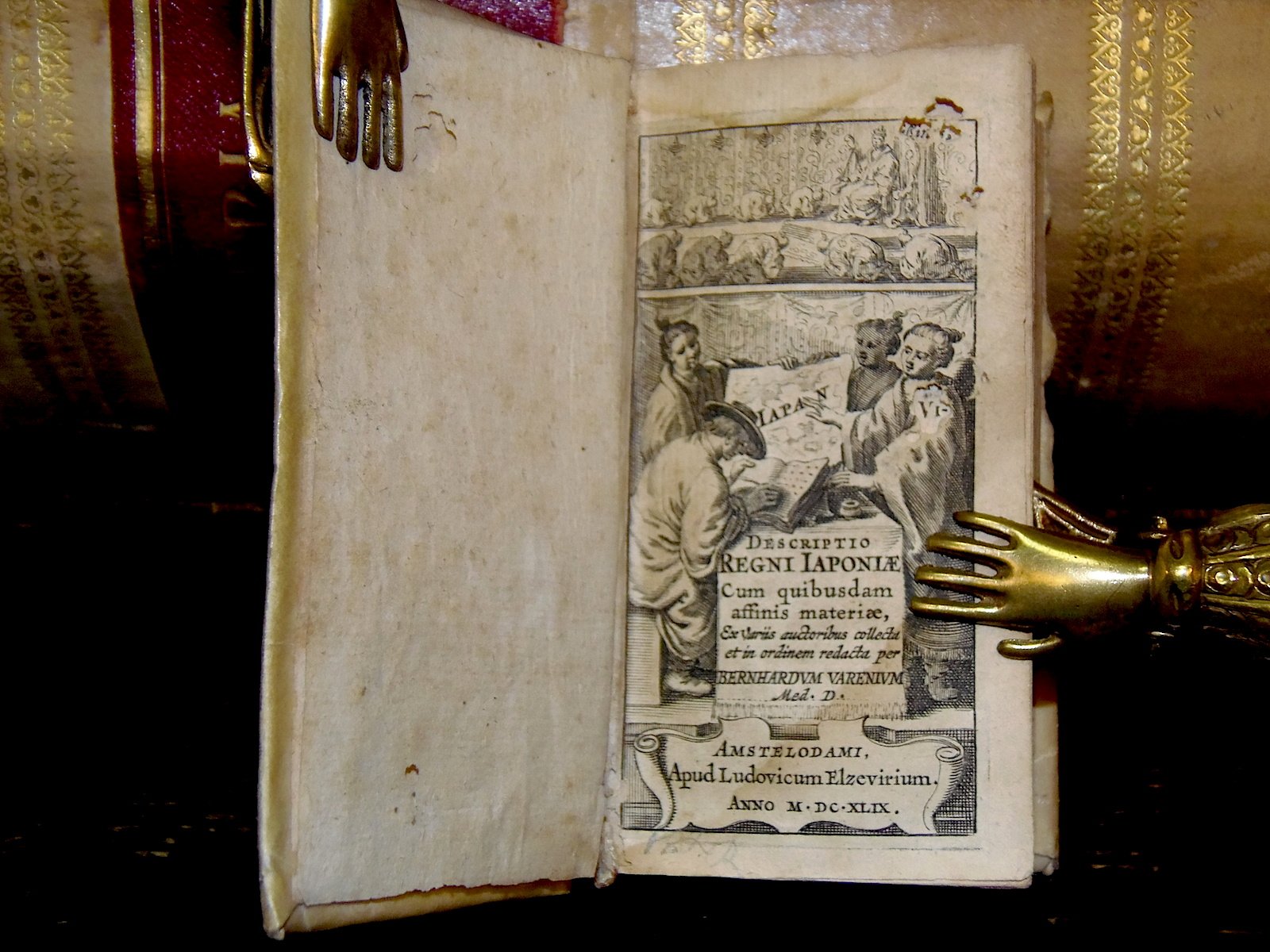 Due parti in un volume. In 16° (mm 117x60), pagg. (48), 267 mal numerato, ma 287, (1); (8), 223, (3), 227-320 (mal numerate). Frontespizio figurato ed una tabella ripiegata fuori testo. Capolettera e cul de lampe silografici. Pergamena rigida coeva, dorso con quattro nervi e titolo manoscritto a inchiostro bruno. Volume tratto dalla interessante collana che gli Elzevir pubblicarono, nell'arco di circa 20 anni, sulla storia e la geografia di regni e repubbliche del mondo. <BR>Edizione originale di questo interessante trattato storico - geografico sul Giappone, redatto dallo studioso matematico e medico tedesco, un anno prima della sua morte; suddiviso in tre sezioni 1: "Descriptio Regni Iaponiae pagg. 1 - 210; 2: Descriptio Regni Siam, Per Iodocum Schouetenium… translata in Latinum per Bernhardum Varenium pag. 231-267(287).<BR>3: "Tractatus In quo agitur. De Iaponiorum religione. De Christianae religionis introductione in ea loca. De ejusdem exstirpatione". Adjuncta eft de Diverfa Diverfarum Genium Totius Telluris Religione brevis Informatio auctore Bernardo Varenio. Chiude l'opera " Brevis Informatio de diversis gentium religionibus"; pagg. 227-320<BR>Bell'esemplare con minime mende, quali piccoli fori al frontespizio restaurato, un po scucito alla prima pag. e all'ultima, lievi aloni al margine inf. Piccolo difetto al marg. post. est. del piatto inf.<BR><BR>Willems:"Cette description du Japon est, sinon la dernière des Républiques, comme on l'a dit par erreur, du moins la dernière de celles qu'ont publiées les Elzevier. Varenius déclare l'avoir composée pour se délasser de ses travaux mathématiques, et il ajoute que presque toutes les nations "omnes fere respublicas" ont été l'objet d'un semblable travail"; Cordier Japonica 367-368<BR>In 16° (mm 117x60), pagg. (48), 267 misnumberd, ma 287, (1); (8), 223, (3), 227-320 (misnumberd). Engraved title with figures. Floriated woodcut initials, cul - de lampe and headpieces. Contemporary vellum handwritten title on spine. First edition. In 1649 Varenius (1622 - 1650) a german geographer, published through L. Elzevir of Amsterdam, this interesting opera on Japan, in this was included a translation into latin of part of Jodocus Schouten's account of Siam, and chapters on religions of various peoples. Very nice copy, genuine; light waterstain at bottom corner.