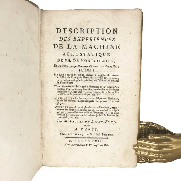 Description des Expériences de la Machine Aérostatique de MM. de Montgolfier, Et de celles auxquelles cette découverte a donné lieu; SUIVIE de Recherches D'un Mémoire D'un Lettre Ouvrage.