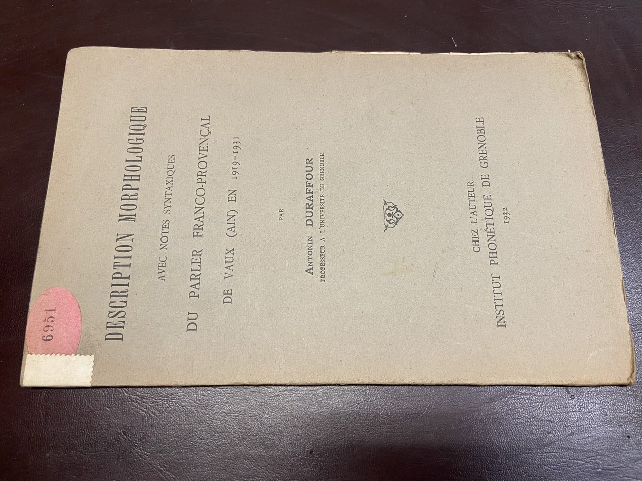 Description morphologique avec notes syntaxiques du parler Franco-Provençal de vaux (ain) en 1919-31.