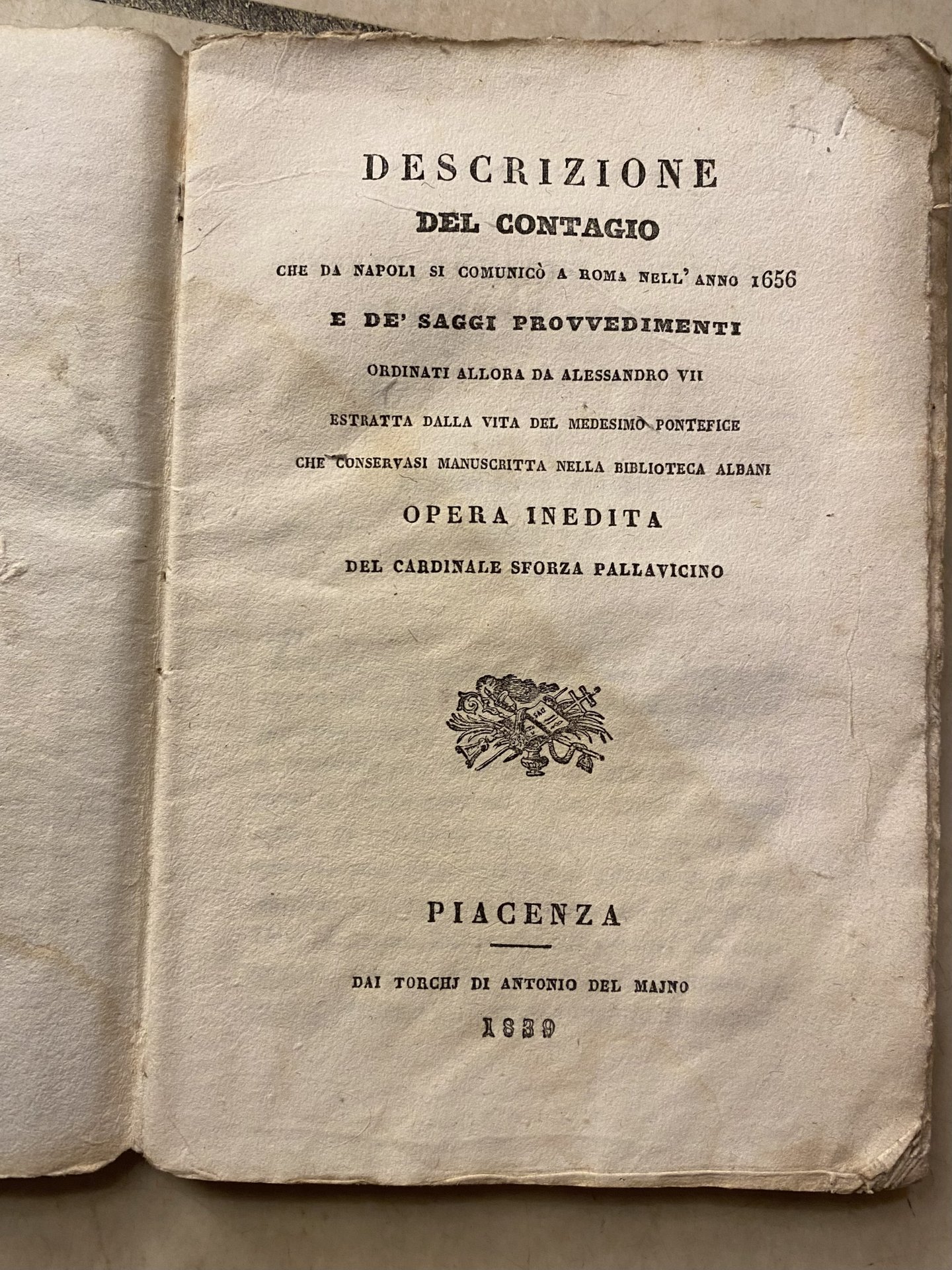 Descrizione del contagio che da Napoli si comunicò a Roma nell'anno 1656 e de' saggi provvedimenti ordinati allora da Alessandro VII estratta dalla vita del medisimo pontefice che conservasi manuscritta nella biblioteca Albani - opera inedita