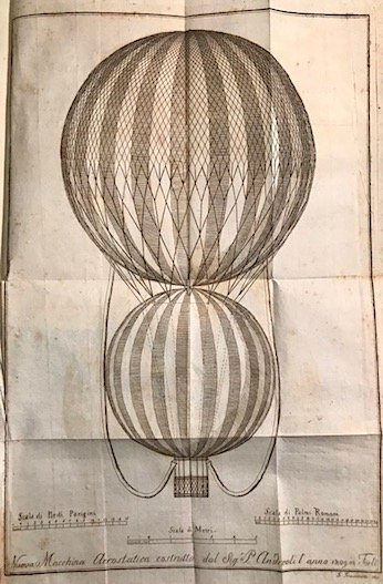 8vo (cm. 18,8), 32 pp., 1 c.nn. di Errata. Con una tavola calcografica più volte ripiegata in fine (incisa da G. Frascinetti). Brossura muta. Esemplare in ottimo stato di conservazione. Provenienza: Collezione Moretti, Roma (timbretto ex libris al frontespizio). Unica edizione, rarissima, di questo resoconto di costruzione dell'aerostato ‘La Speranza’ ad opera di uno dei grandi pionieri dell'aviazione italiana, l'Andreoli (1774-1837), che su di esso effettuò varie ascensioni a Forlì e a Brescia.