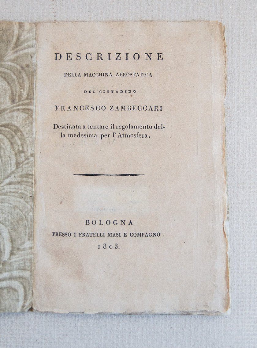 Descrizione della macchina aerostatica del cittadino Francesco Zambeccari destinata a tentare il regolamento della medesima per l'Atmosfera.