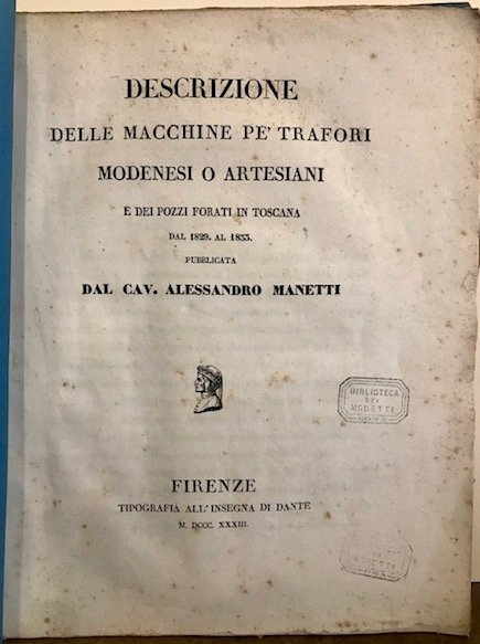 Descrizione delle macchine pe’ trafori modenesi o artesiani e dei pozzi forati in Toscana dal 1829 al 1833