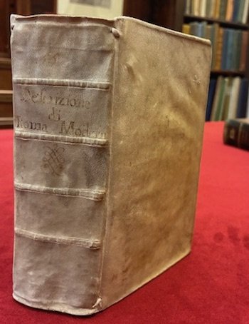 8vo (cm. 16,4), 4 cc.nn. (compreso primo frontespizio allegorico interamente inciso), 698 pp., 19 cc.nn. Con 82 illustrazioni calcografiche n.t., 22 medaglioni xilografici e 5 tavole ripiegate f.t. Legatura coeva in pergamena rigida con piccoli nervi e titolo ms. al ds. Tagli spruzzati. Lievi aloni sparsi, peraltro esemplare in ottimo stato di conservazione. Prima rara edizione. Cfr. Rossetti, G-976.