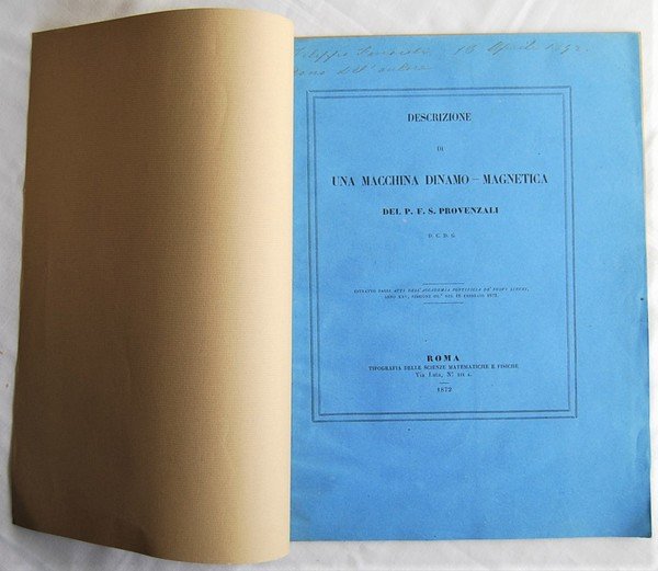Tipografia delle Scienze Matematiche e Fisiche, 1872. In-4, brossura, pp. 9, con una tavola piu' volte ripiegata fuori testo. Estratto dagli Atti dell'Accademia Pontificia de' Nuovi Lincei. In ottimo stato