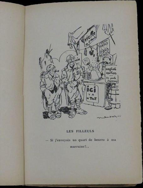 In 8° (18,5×12 cm); X pp.e 155 c. di tav. non numerate. Presente la brossura editoriale che riporta il titolo con la differenza, rispetto al frontespizio, della data 1918 al posto di 1917. Prima ed unica non comune edizione di questo importante opera satirica dedicata alla guerra del famoso caricaturista nato a Modena il 30 giugno 1887, Enzo Manfredini. Il volume è rarissimo a reperirsi completo della sua brossura editoriale che presenta, al piatto anteriore, titolo, autore ed una bella vignetta satirica a colori. Mentre le tavole dell'opera sono stampate su carta forte di ottima qualità, il frontespizio, realizzato solo dopo che la stesura dell'opera era stata conclusa, da qua la differenza di titolo, venne stampato su una carta di media qualiltà. L'opera presenta l'introduzione del poeta francese, André Salmon (Parigi, 4 ottobre 1881 - Sanary-sur-Mer, 12 marzo 1969) fra i massimi difensori, insieme a Apollinaire e Raynal, della corrente artistica del cubismo. Manfredini fu fra i più celebri caricaturisti del XX° secolo. Collaboratore di alcune delle più importanti riviste italiani dell'inizio del XX° secolo come il "Duca Borso", "Il Pasquino", "Torino ridet", "Conte Salomone", la napoletana "Ma ch è?" (rivista dal gusto moderno ed europeo che riprendeva anche vignette dai due celebri giornali satirici "Simplicissimus" e la "Rire"), dopo pochi anni a Torino si trasferì a Parigi . Qui aprì una bottega che prese il nome di "Atelier Manfredini" specializzato in pubblicità, dessins, affiches, illustrations. L'attività ebbe da subito un grande successo e ben presto, divenne uno degli illustratori più richiesti di Parigi raggiungendo fama e ricchezza grazie alle sue vignette apparse su giornali quali Pages Folles, L'Intransigent, Le Matin, La baionette, Excelsior, Les son dit, Le Journal, Petit Parisien, Le Rire, Le Sourire, Pêle-Mêle e altri. Qui a Parigi dove frequentava il frizzante mondo letterario, si svolse quasi interamente la sua attività letteraria, anche se non mancò di inviare saltuariamente le sue caricature anche sui giornali italiani come ad esempio il "Duca Borso" giornale ideato da Umberto Tirelli che sicuramente ebbe grande influenza su Manfredini. A Parigi divenne anche amico di Amedeo Modigliani. I suoi disegni traggono la linfa dalla vita diurna e notturna dei bassifondi e delle zone più vive della capitali francese. L'opera qui presentata invece racconta la guerra come la visse l'autore, da volontario portaferiti arruolatosi già nel 1914. Ritornato dal fronte verso la fine del 1914 rimase profondamente colpito dalle scene di guerra che vide e decise di impegnarsi per rappresentare adeguatamente la brutalità e inutilità della guerra. Si hanno così una serie di disegni dove il sarcasmo e l'ironia non nascondono l'angoscia legata agli avvenimenti bellici, sempre però in chiave anti-tedesca. Prima edizione assai rara, due soli esemplari censiti in ICCU. Buono-ottimo stato di conservazione. Rif. Bibl.: IT\ICCU\TO0\1748575.