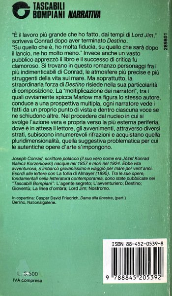 Soggetti: Il Caso, Letteratura anglosassone, Grandi classici, Narrativa classica, Racconti marinareschi, Capolavori, Romanzi drammatici, Marinari, Novecento, Mare, Libri cult, Libri Vintage, Edizioni fuori catalogo, Metafora, Esistenza, Avventura, Colpi di scena, Cuore di tenebra, The Heart of Darkness, Nostromo, Capitani, Navi, Navigazione, Oceani, Mistero, Collezionismo, Fiabe, Storie, Jozef Konrad Nalecz Korzeniowski, Lord Jim, Cesare Pavese, Viaggio, Seven Isles, Western Eyes, John Quinn, Manuscripts and typescripts, Romanticismo, Modernismo, Letteratura modernista, Anti-eroi, Terre selvagge, Sud, Apocalypse Now, Impero britannico, Ottocento, Antologie, Raccolte, Letteratura vittoriana, Grande Emigrazione, Destino, Speculazione finanziaria, Salvezza, 1913, Filo di nebbia, Vizio del gioco, Successi editoriali, The New Novel, Capitano Anthony, Relazioni, Donne, Personaggi femminili, Gossip, Mrs. Fyne, Finanza, Sentimentali, The Case, Anglo-Saxon literature, Great classics, Classic fiction, Seafaring tales, Masterpieces, Dramatic novels, Sailors, Twentieth century, Sea, Cult books, Out of print editions, Metaphor, Existence, Adventure, Twists, Heart of darkness, Ships, Navigation, Oceans, Mystery, Collectibles, Fairy tales, Stories, Travel, Romanticism, Modernism, Modernist literature, Anti-heroes, Wilds, South, British empire, Nineteenth century, Anthologies, Collections, Victorian literature, Great emigration, Destiny, Financial speculation, Salvation, Thread of fog, Gambling addiction, Editorial successes, Relationships, Women, Female characters, Finance, Sentimental