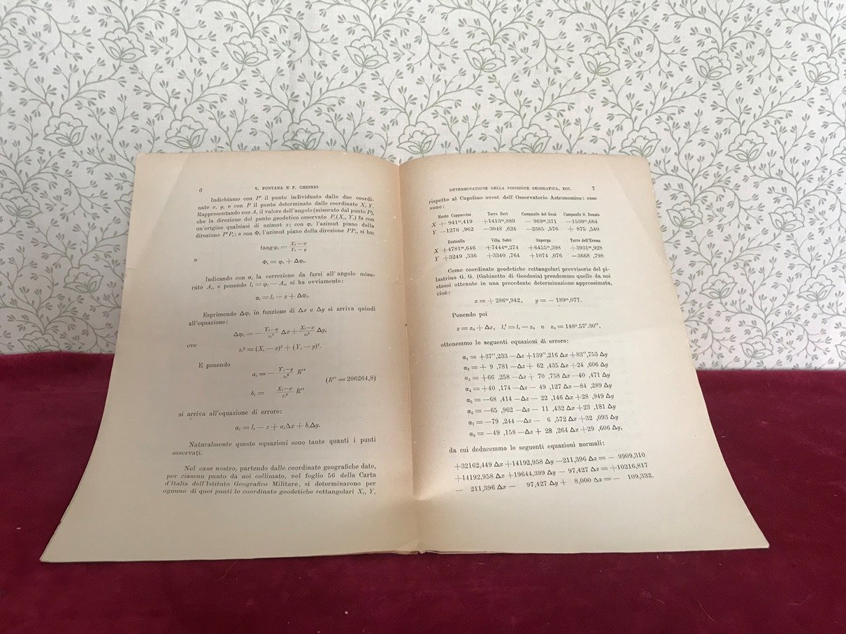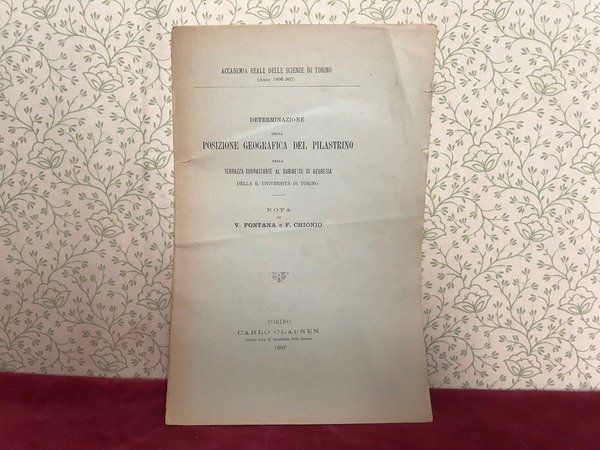 DETERMINAZIONE DELLA POSIZIONE GEOGRAFICA DEL PILASTRINO DELLA TERRAZZA SOVRASTANTE AL GABINETTO DI GEODESIA DELLA R. UNIVERSITA DI TORINO