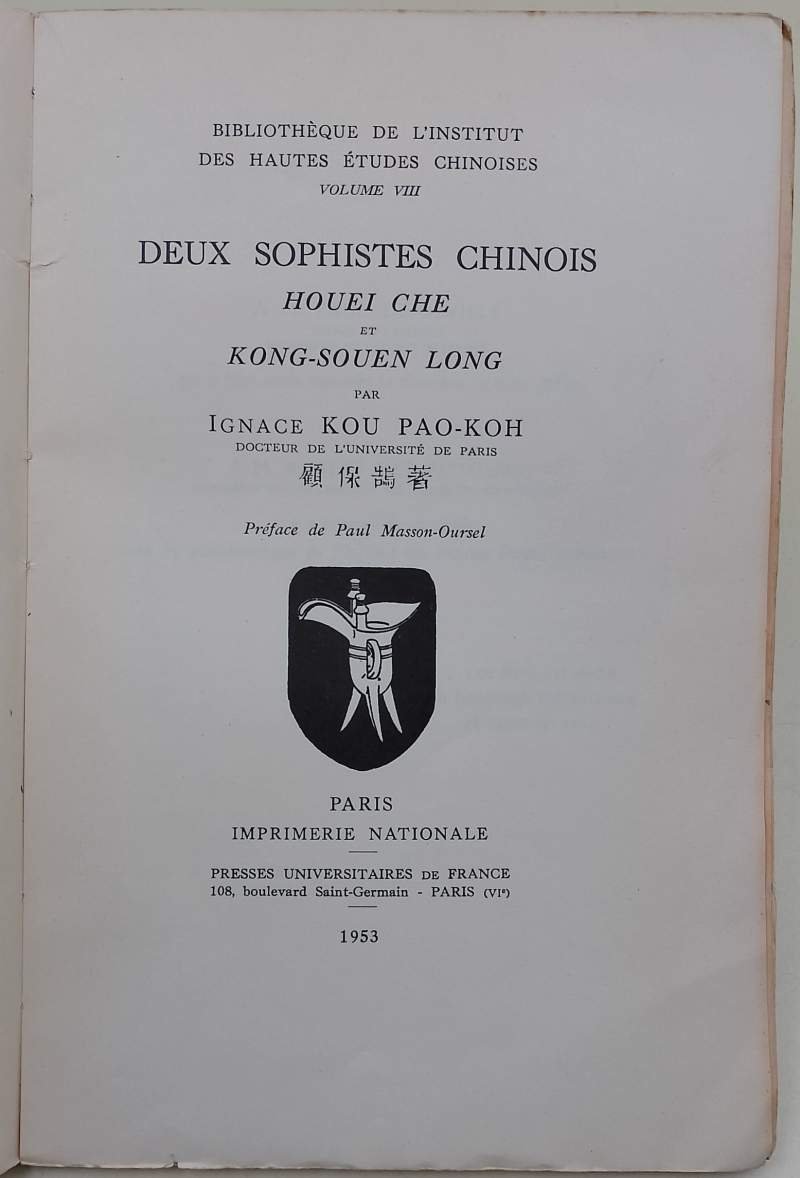DEUX SOPHISTES CHINOIS- HOUEI CHE ET KONG-SOUEN LONG( 1953)